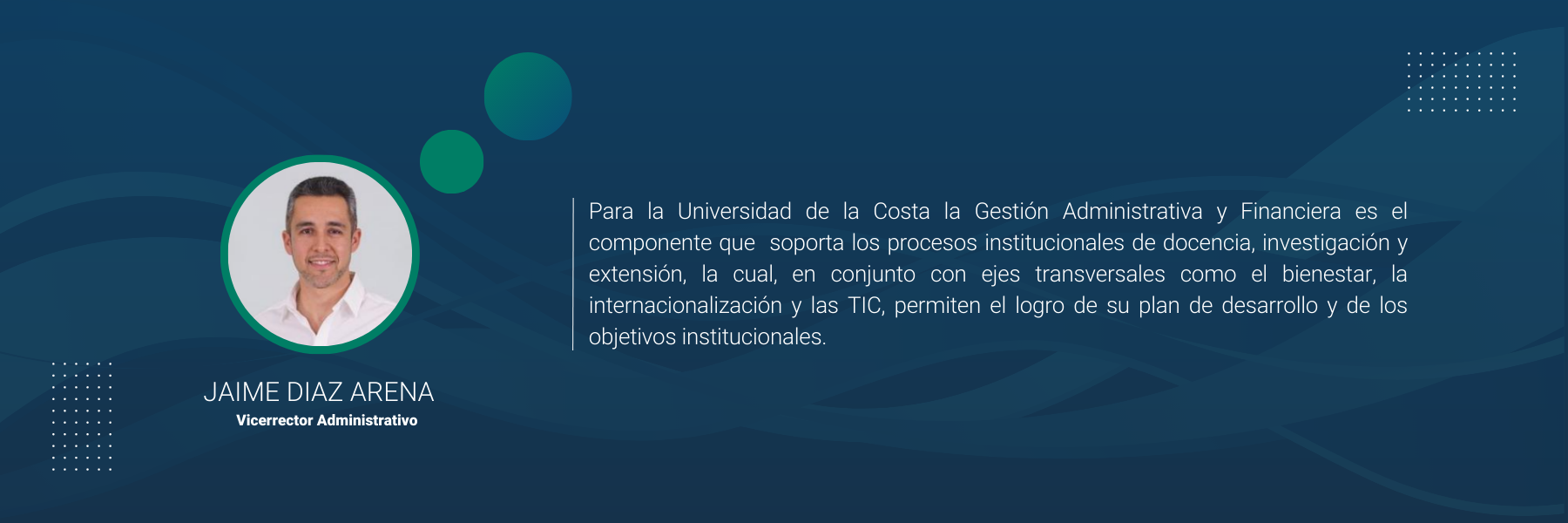 En la Universidad de la costa se concibe la gestión de administración del talento humano como un proceso vital en el desarrollo, fortalecimiento y posicionamiento de la Institución, porque son nuestros colaboradores quienes nos dan la oportunidad de implementar y hacer posibles cambios organizacionales que generen trabajo colaborativo, innovación y generación de nuevas estrategias que impacten la calidad en nuestros servicios, y así contribuir al logro de los objetivos institucionales.